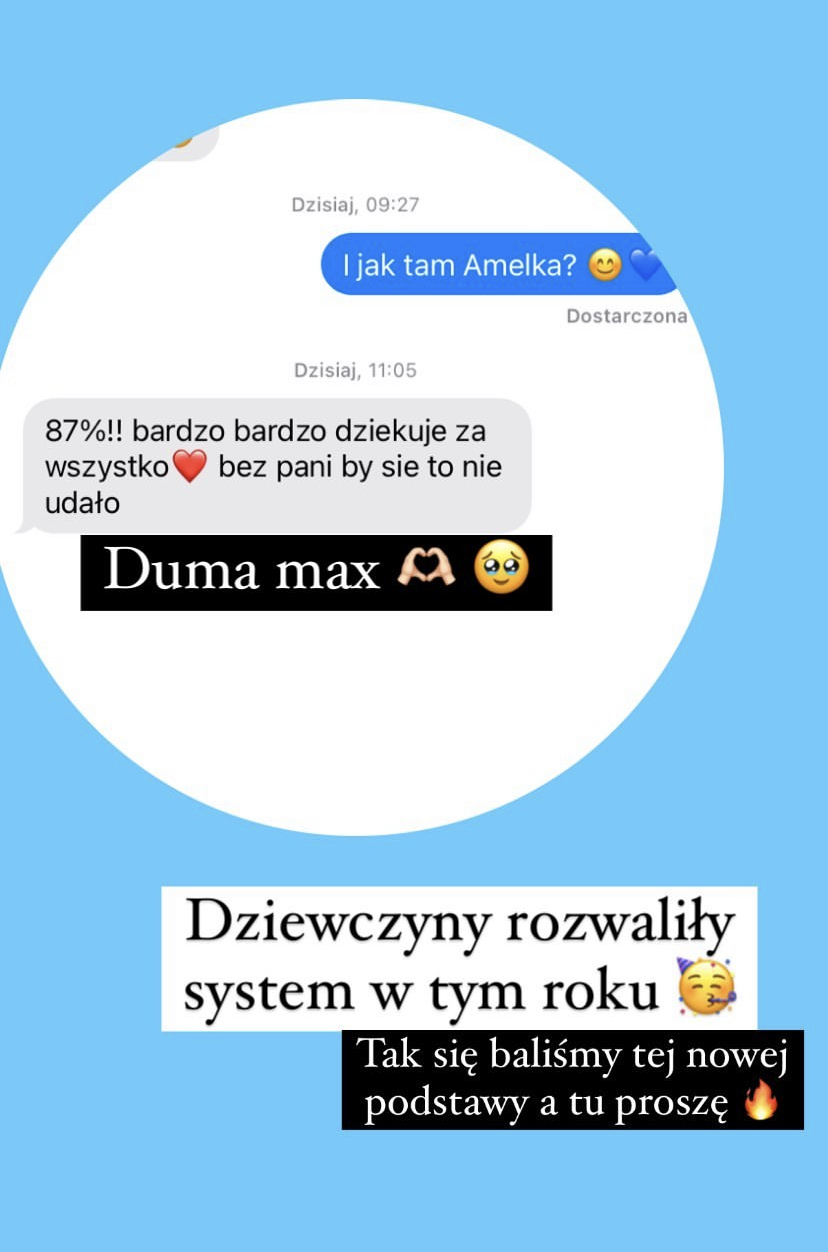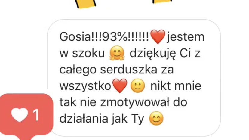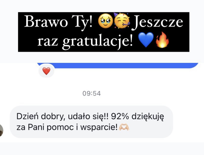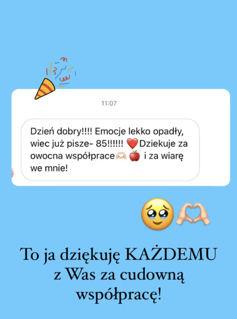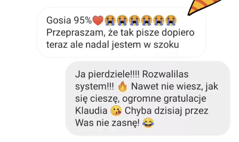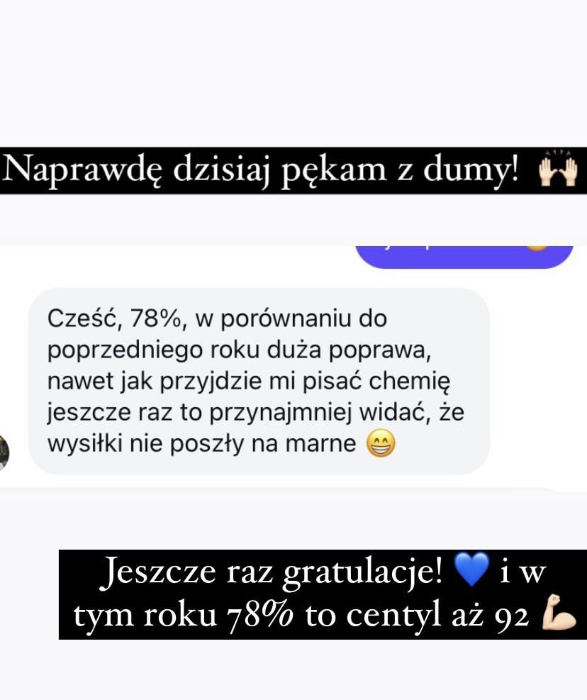 95%, 92%, 88%, 87% (dwie osoby), 85%, 82%, 80%, 78%, 70%
