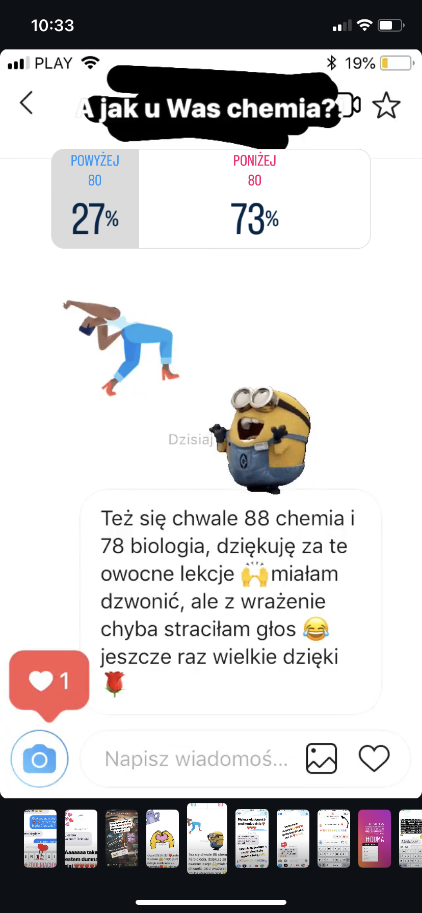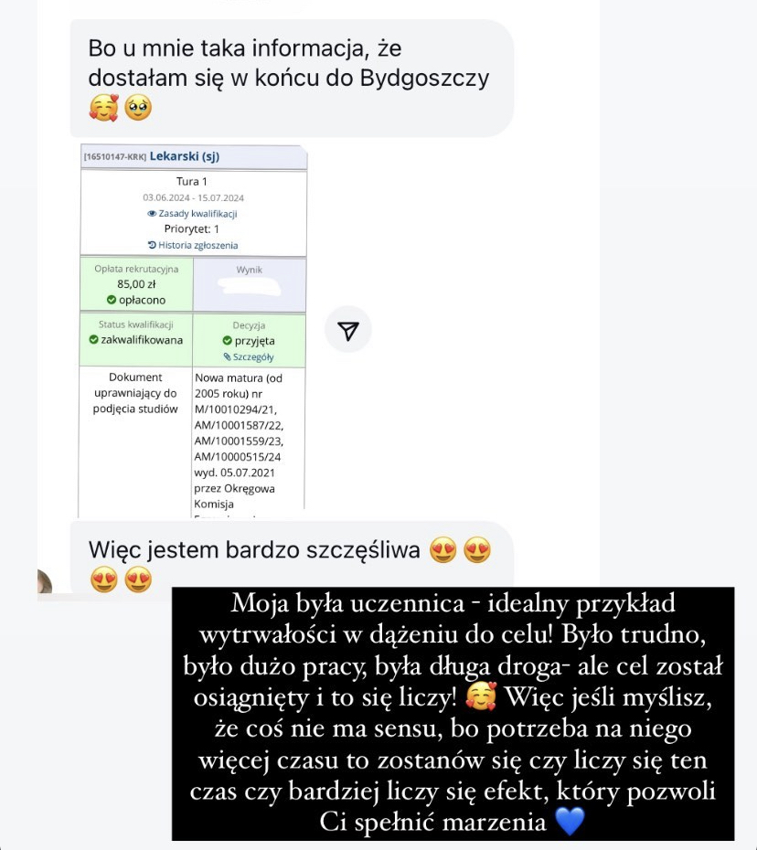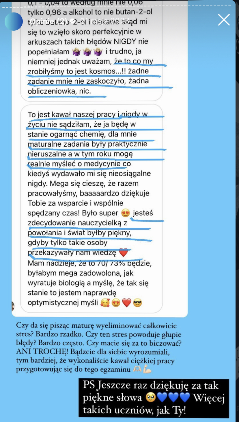 95%, 92%, 88%, 87% (dwie osoby), 85%, 82%, 80%, 78%, 70%